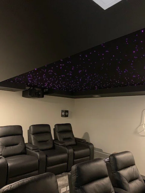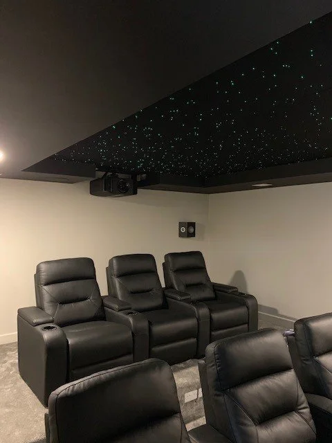 Cinema Room - Split level incorporating L.E.D multi colour changing starlight panels & surround sound