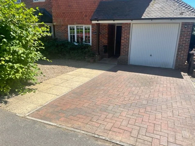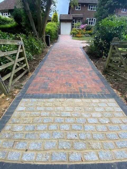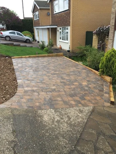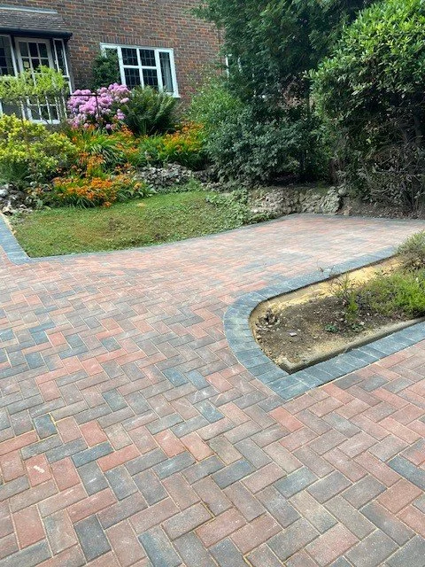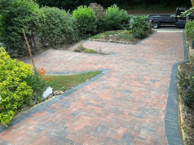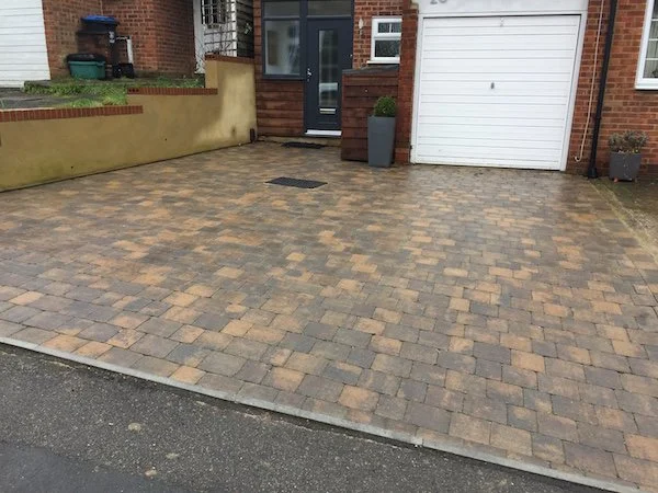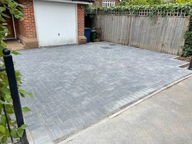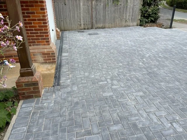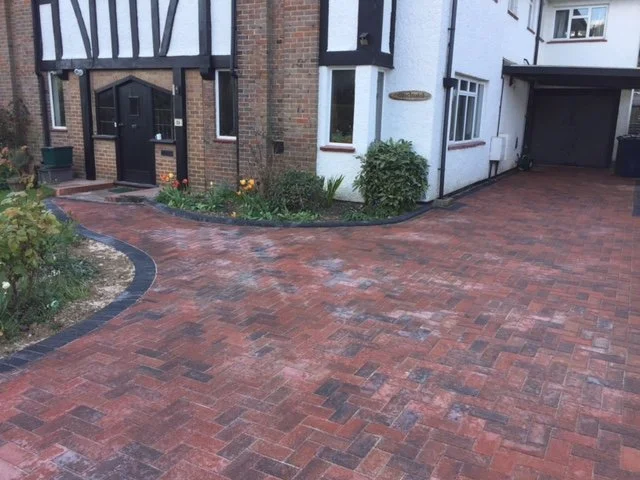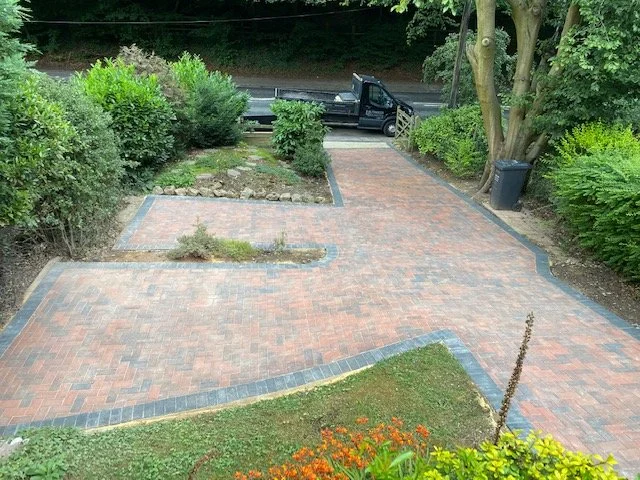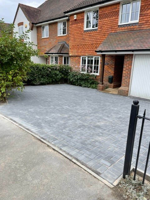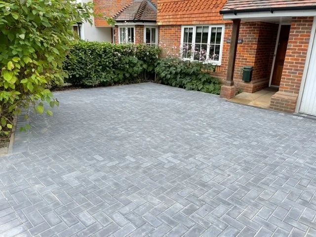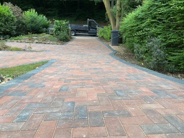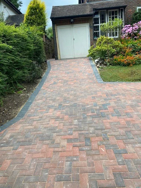 Block paved driveway with charcoal paved edgings