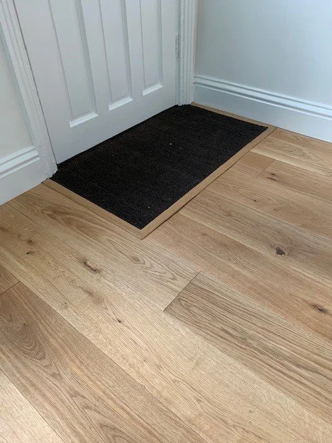 UV natural oiled European engineered oak floor incorporating a sunken charcoal coir mat well
