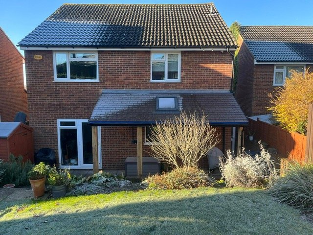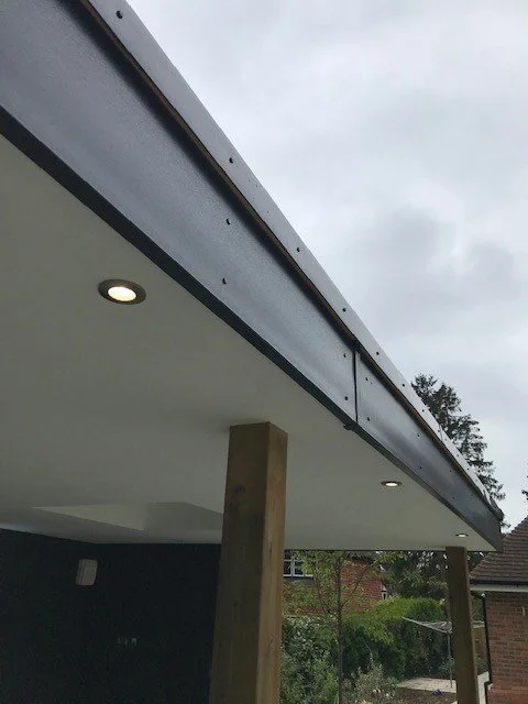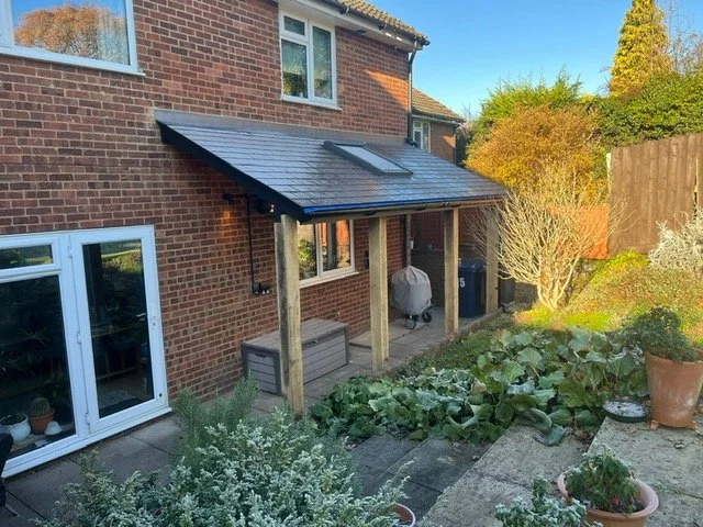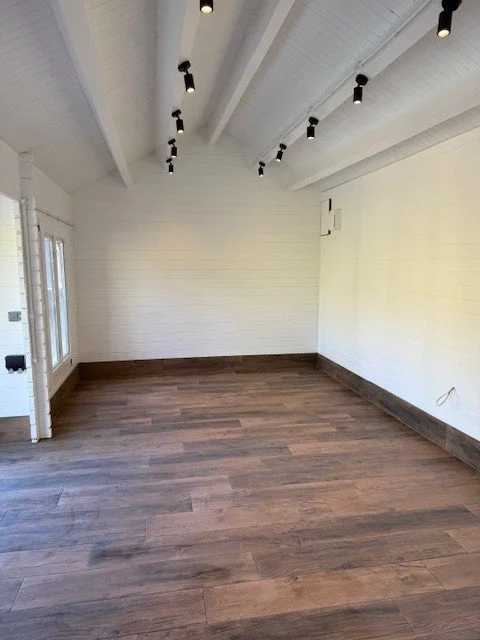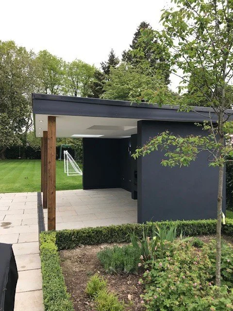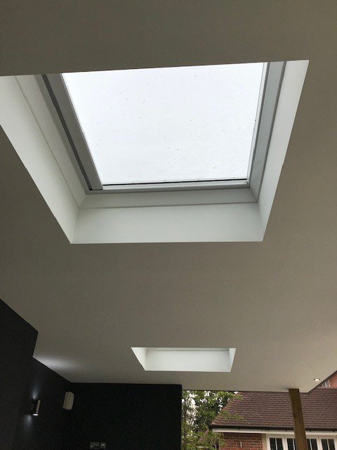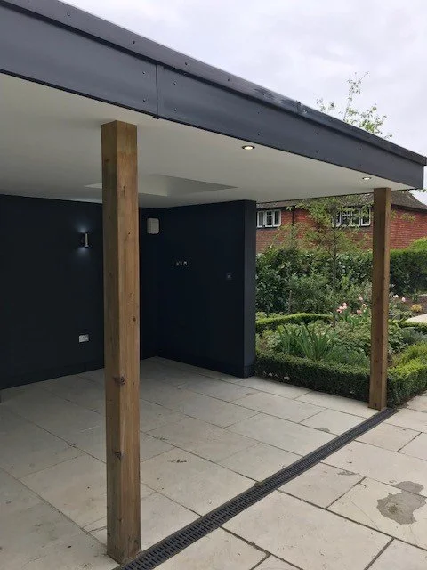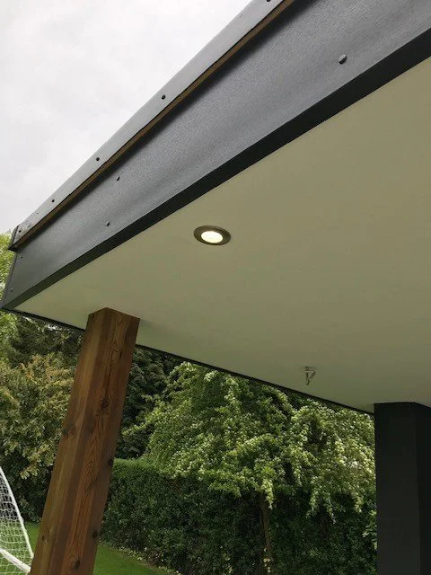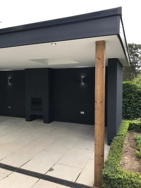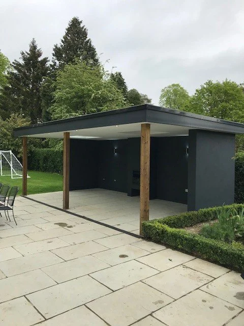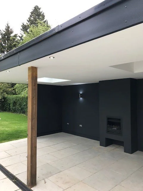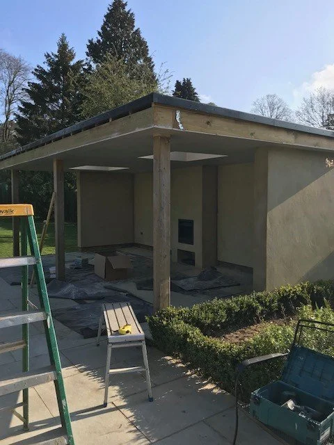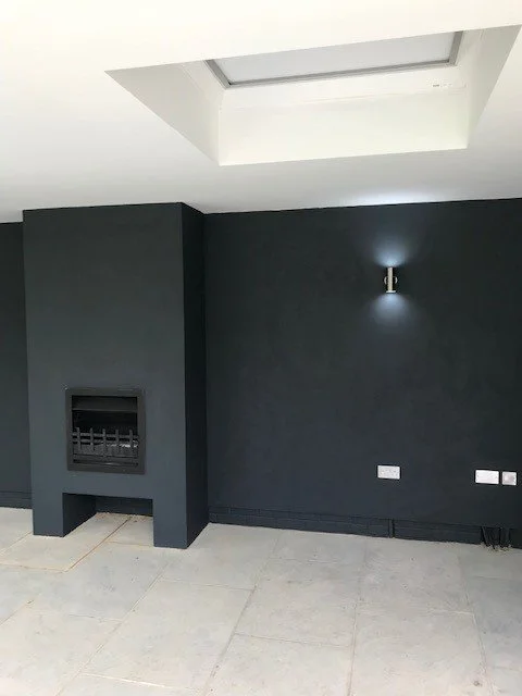Bespoke Garden Room incorporating a central log burner , Velux flat roof lights with solar powered blinds, lighting & power to accommodate media