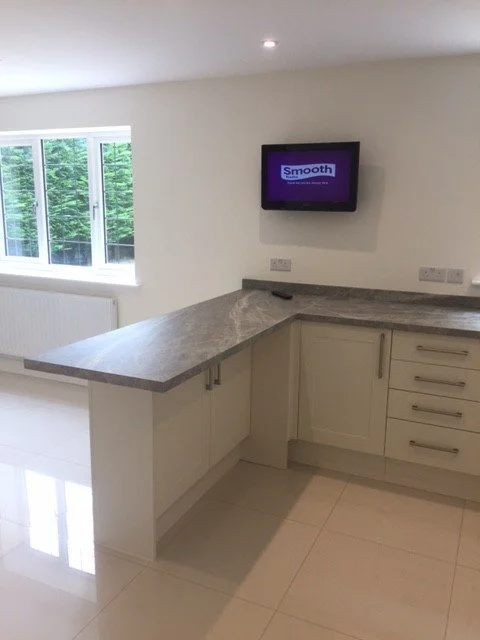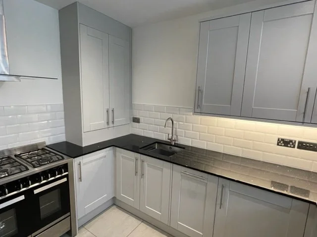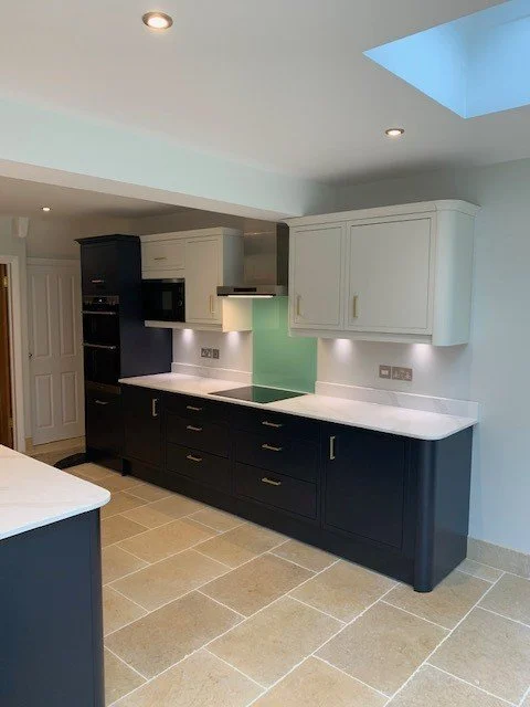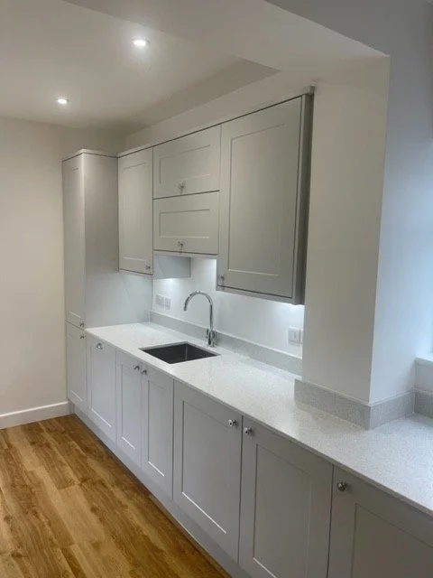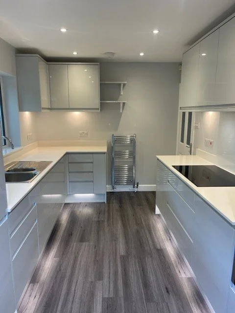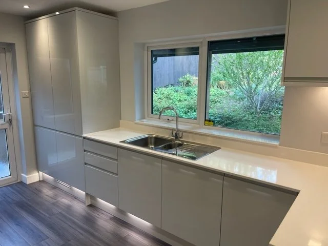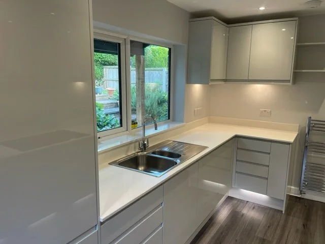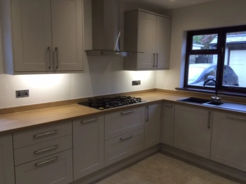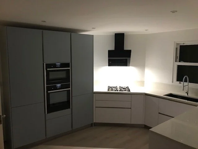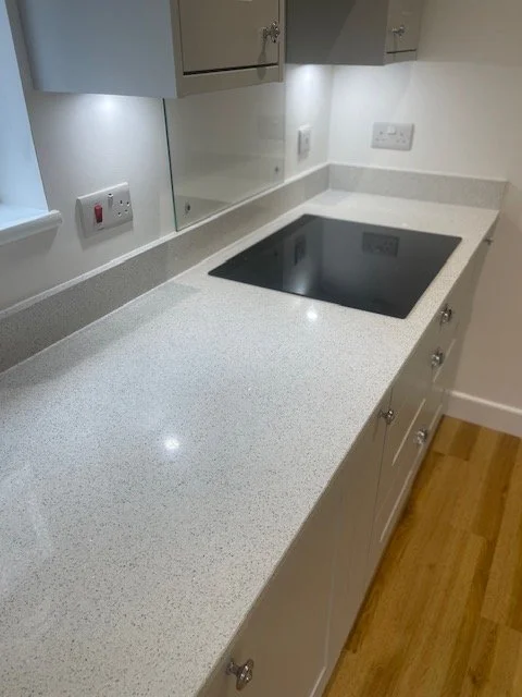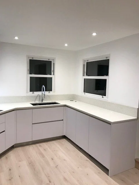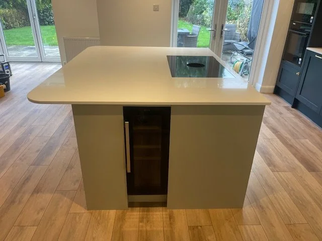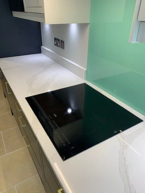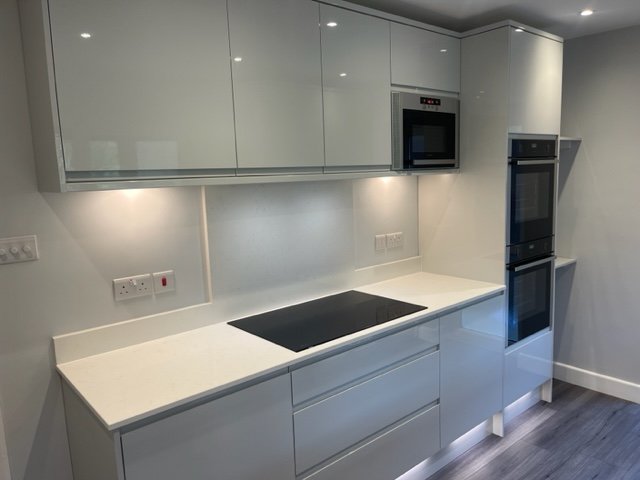 Quartz worktops / splashbacks incorporating under – cupboard & plinth L.E.D lighting