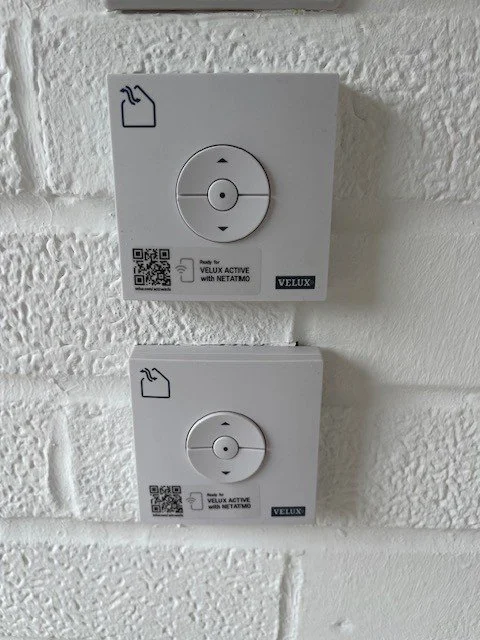 Velux integra electric windows complete with wall mounted remote controls.