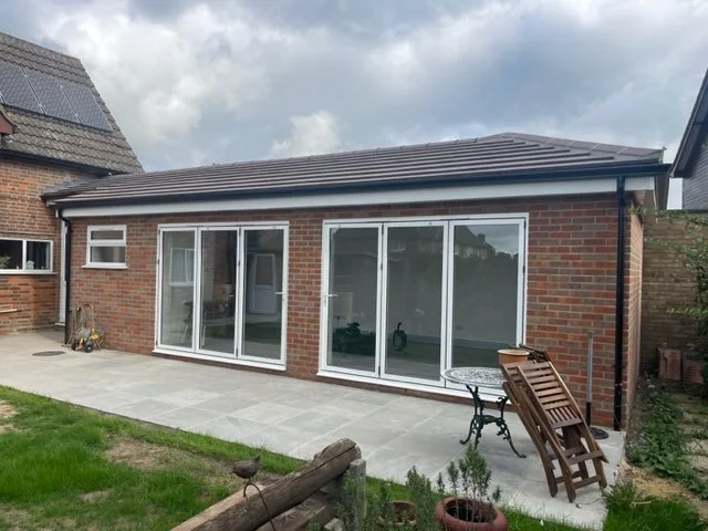 Incorporating flat VELUX roof light & Aluminium powder coated bi-fold doors