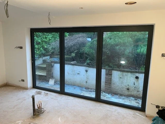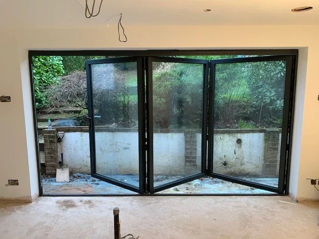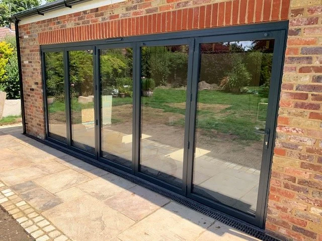5 leaf set of grey aluminium slim line powder coated Bi-fold doors